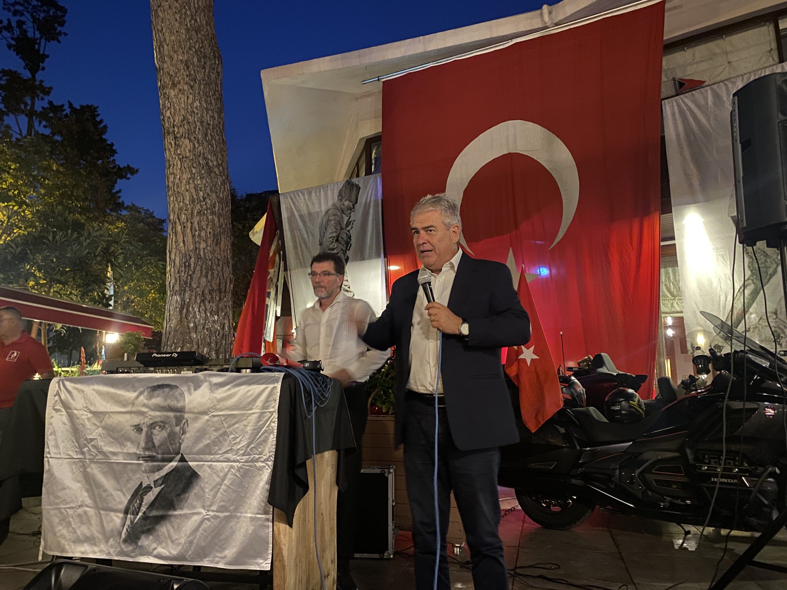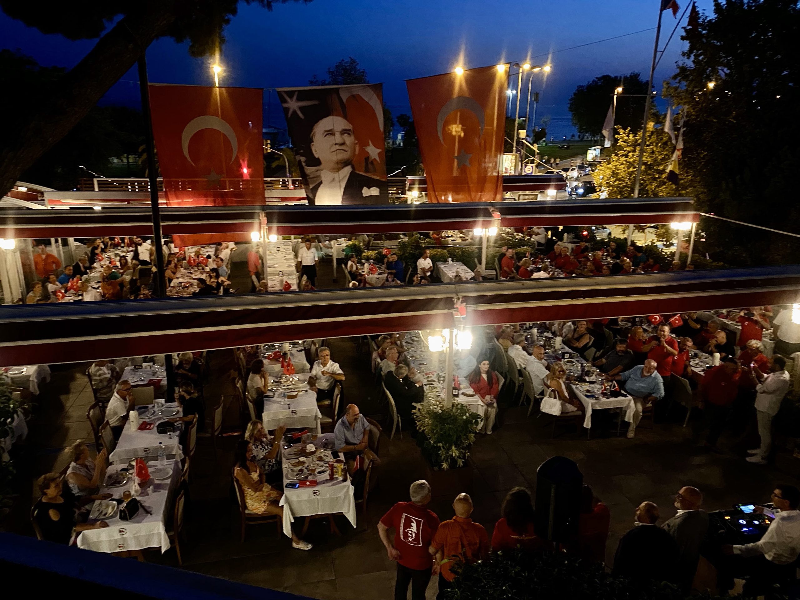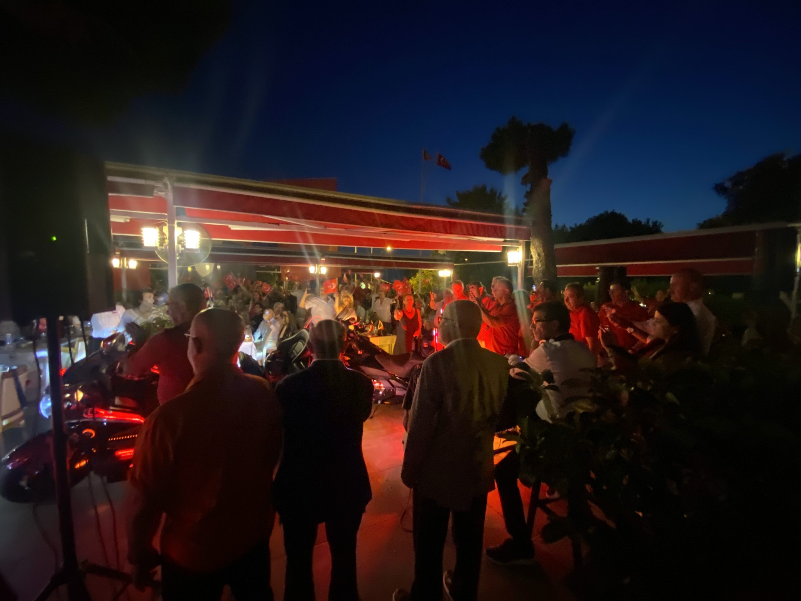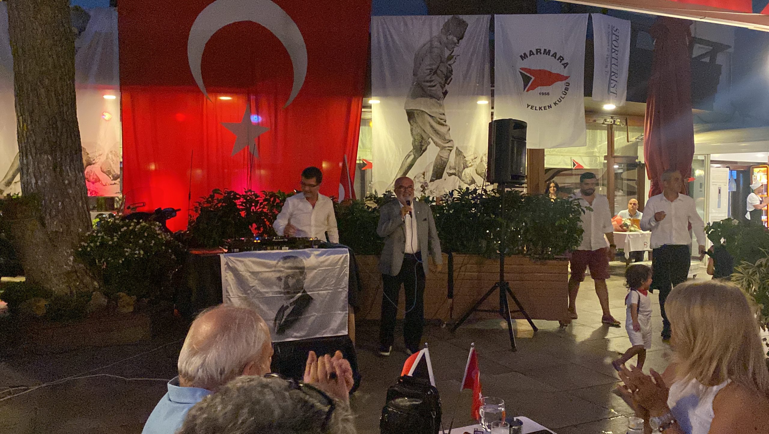 Günün sonuna doğru coşkumuzu Marmara Yelken Spor Kulübü sosyal tesislerine taşıyarak; Zafer gecesine devam ettik. Bu anlamlı geceye 200’den fazla birbirinden değerli üyelerimiz, misafirlerimiz eşlik etti. Gecenin başlangıcını bizlere değerli Prof. Dr. Süheyl Batum yaptı. Yaptığı konferansta günün anlam ve önemini bize bir kez daha hatırlattı. Söyleyişinin sonunda Türkiye Cumhuriyeti’nin sıkı sıkıya bağlı olduğu ilke ve inkılaplardan bahsederek gecenin baş kahramanı olan Mustafa Kemal Atatürk’ü anmış olduk. Oldukça renkli devam eden organizasyonumuzda; her bir noktadan bayraklarımız sallanırken, motorcularımız milli marşlar eşliğinde, ışık gösterisi gerçekleştirdi. Değerli üyelerimiz ve misafirlerimiz tarafından ilgiyle karşılanan bu gösterinin yerini, DJ Mehmet Coşkun’un günün temasına özel hazırladığı DJ performansı aldı. Geceyi ellerimizde bayraklar ve marşlar eşliğinde sonlandırırken sizlerde gördüğümüz o coşku ve heyecana ev sahipliği yapmış olmak Marmara Yelken Spor kulübü olarak gurur vericiydi.